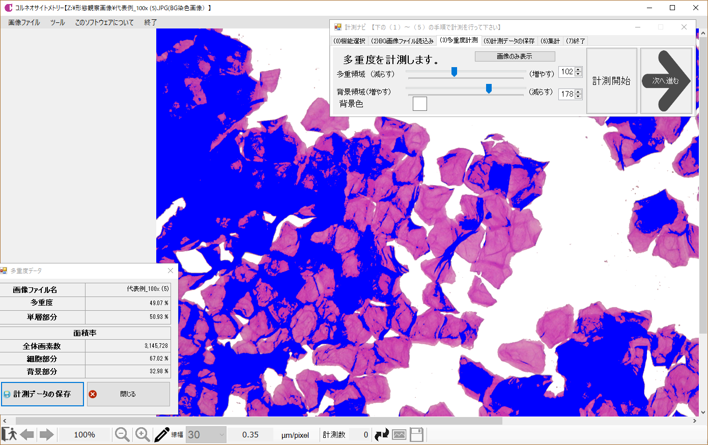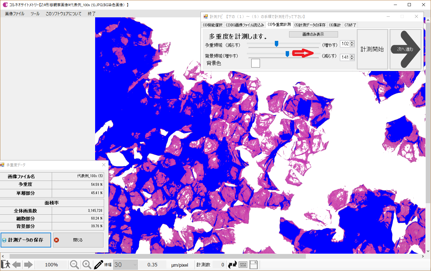 画像ファイルが読み込まれ、計測ナビが多重度計測へ進みます。