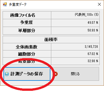 多重領域と背景領域の指定が指定できましたらその時点での計測値を保存します。