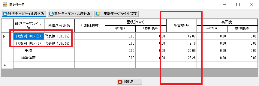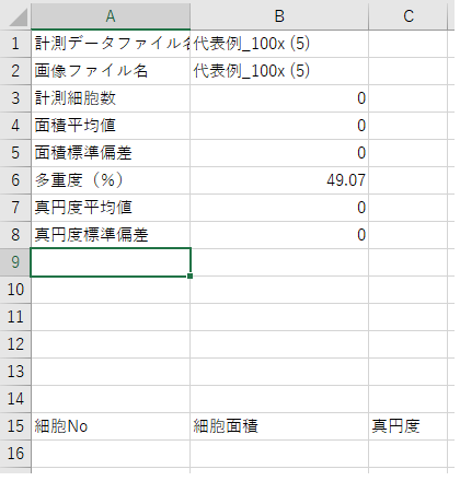 ※多重度計測のみを行っている場合にも面積計測の項目が出力されます。