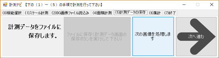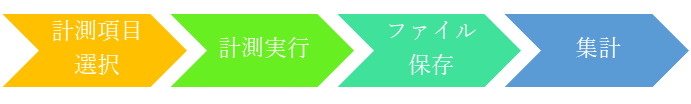 計測項目を選択したら、計測実行とファイル保存を計測する画像分だけ繰り返して最後に集計処理を行うという流れです。