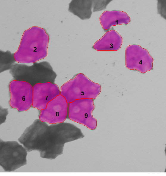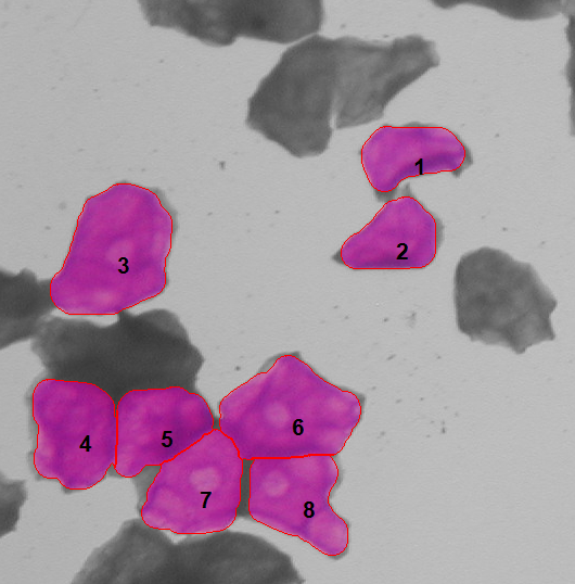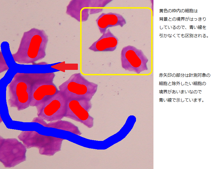細胞部分と計測しない部分を指示した例が下の画像になります。