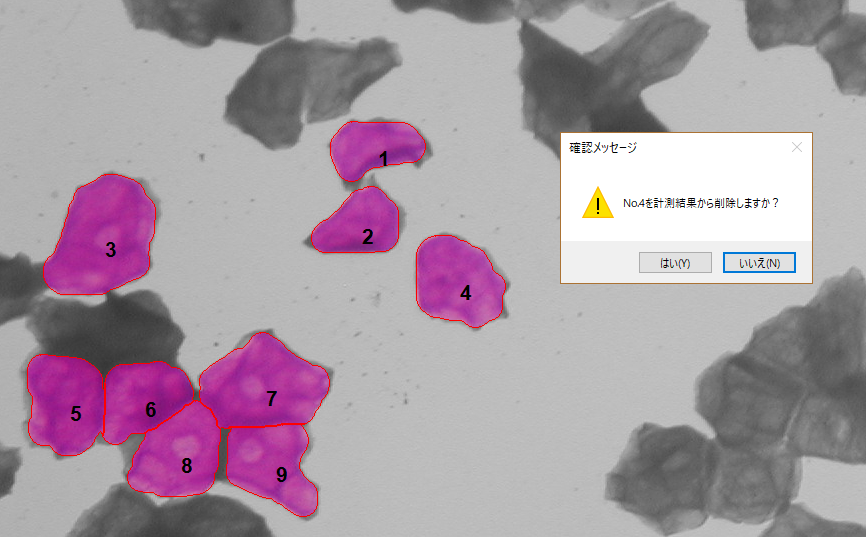 計測実行した結果、必要ないと思われる細胞を結果データから削除することができます。