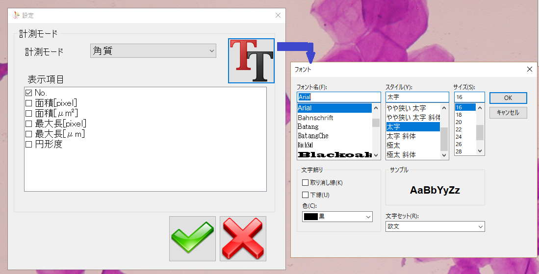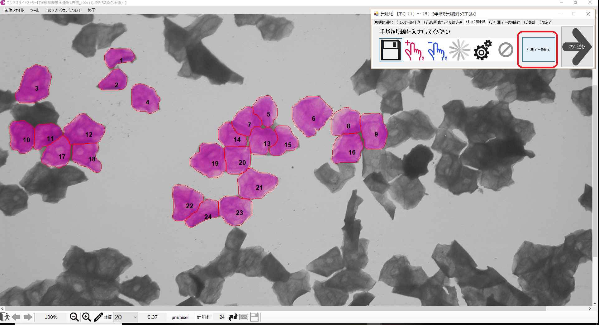 画像計測メニューで「BG染色細胞計測」をクリックします。