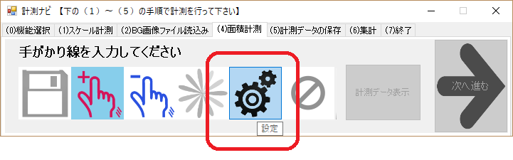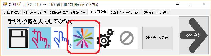 画像ファイルが読み込まれ、計測ナビが「面積計測」へ進みます。