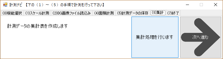 ここからは計測ナビの順序で進めていけば計測処理ができるようになっています。