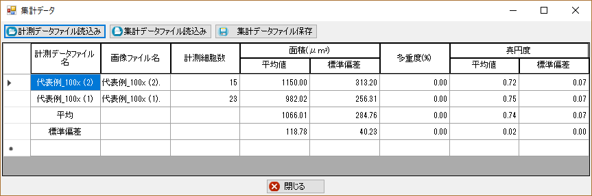 必要な画像の計測とファイル保存が完了したら、データ集計を行います。