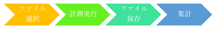 計測項目を選択したら、計測実行とファイル保存を計測する画像分だけ繰り返して最後に集計処理を行うという流れです。