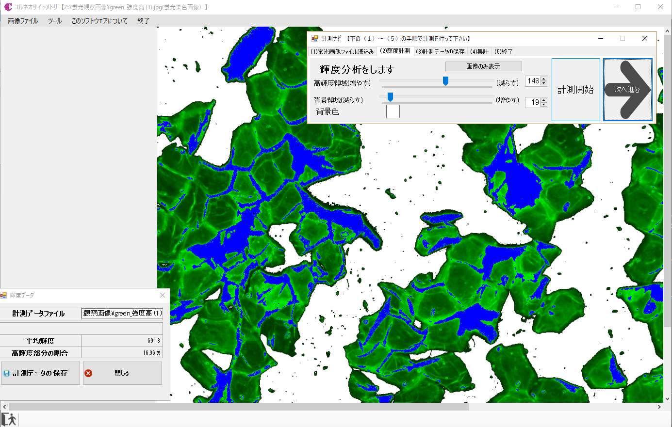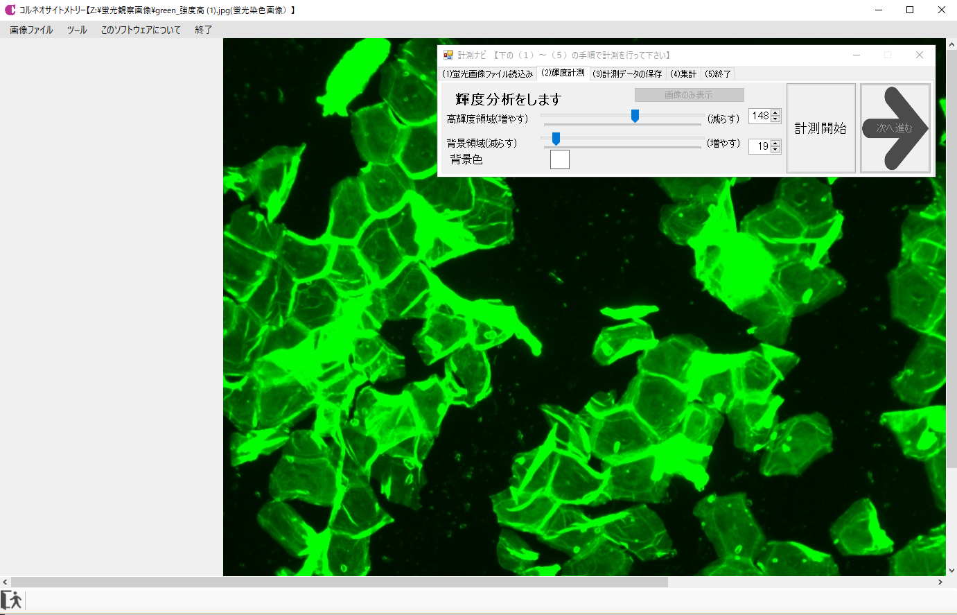 蛍光画像輝度計測プログラムが起動して画面が表示されます。